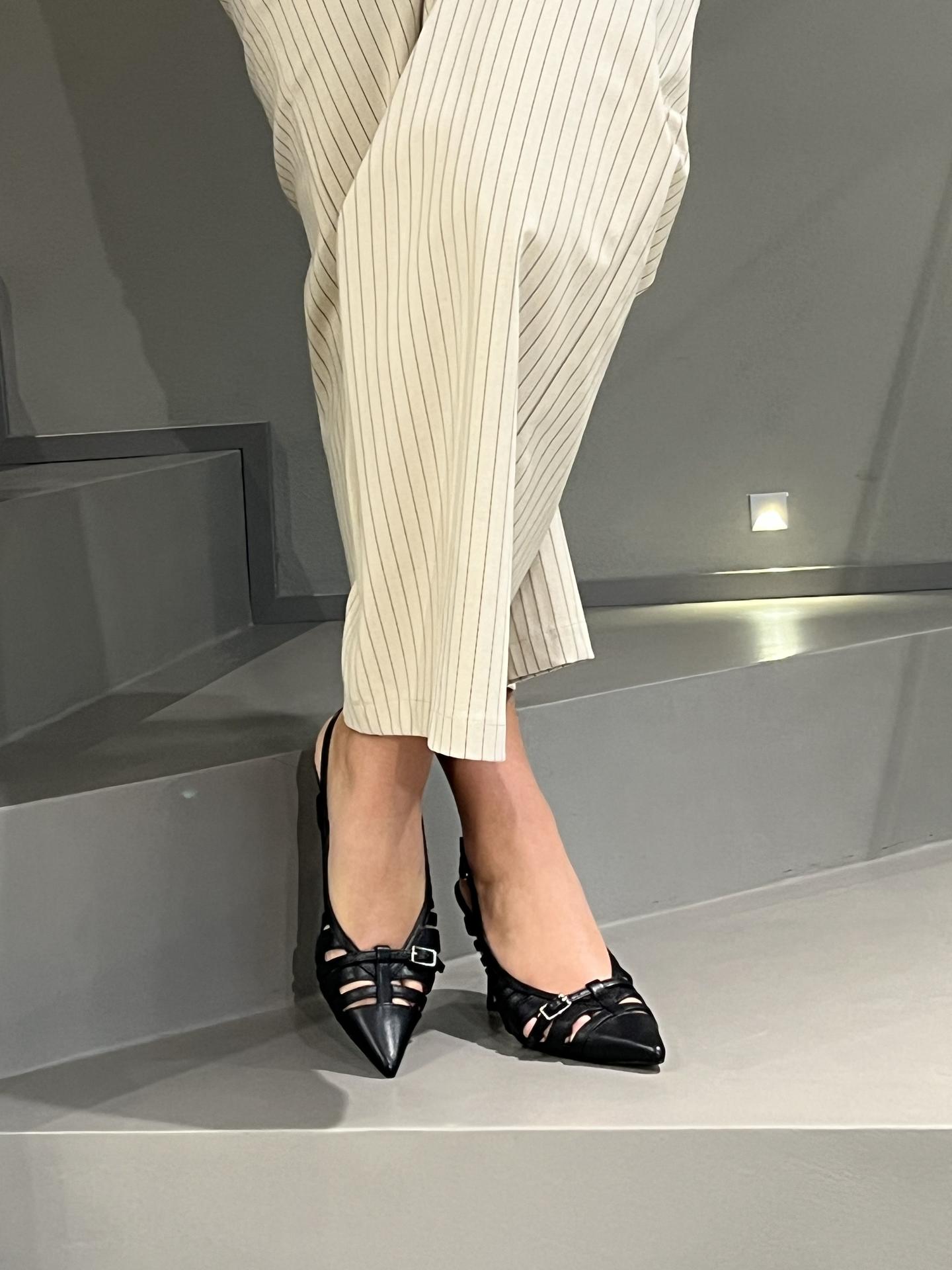 CHANEL IN PELLE CON CINTURINO REGOLABILE SUL RETRO. TACCO 85, FONDO GOMMA.