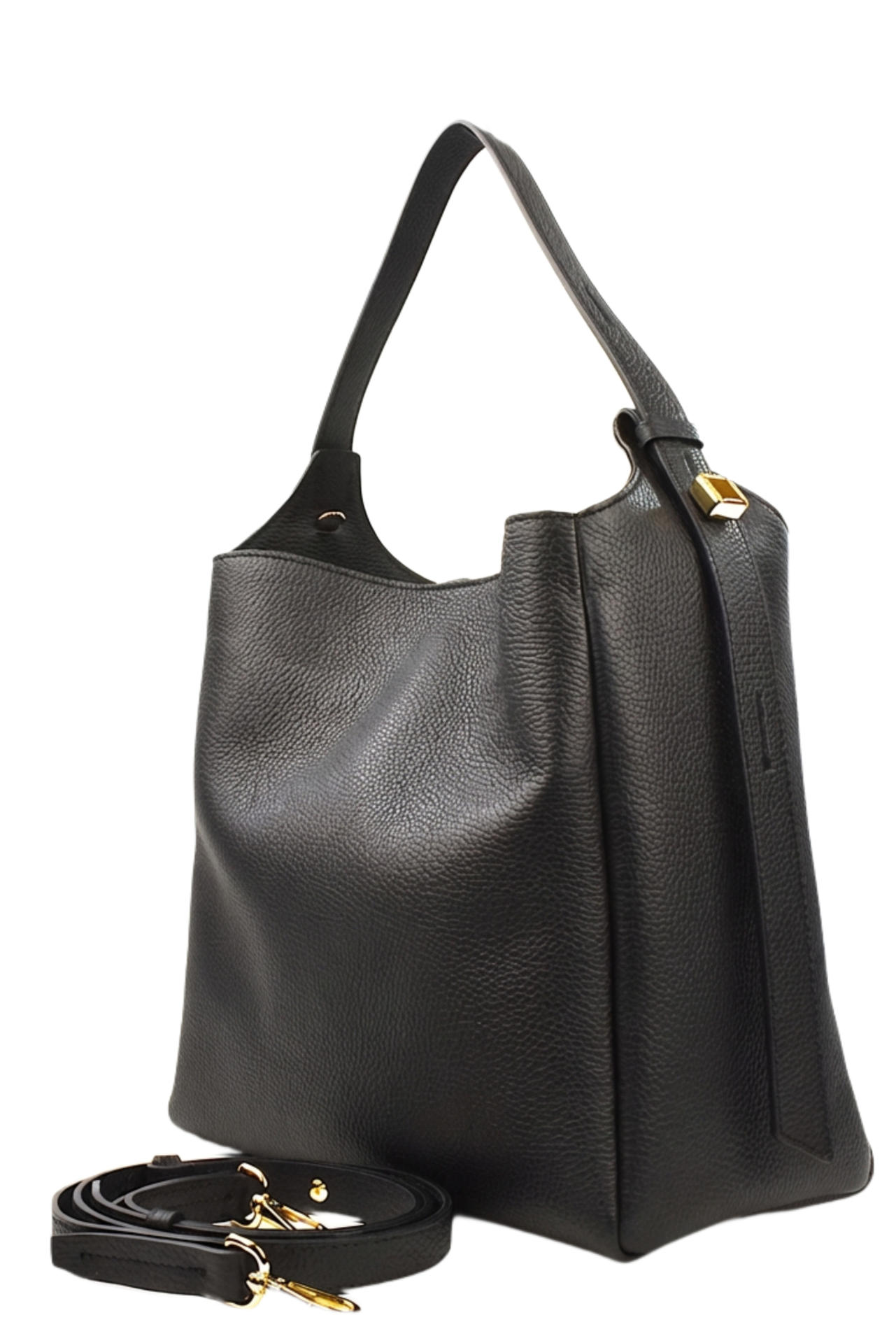 BORSA IN PELLE CON BOTTONE MAGNETICO DI CHIUSURA. INTERNO FODERATO E CON TASCHE. TRACOLLA IN PELLE IN TINTA INCLUSA. MISURE 28X26X15. MADE IN ITALY