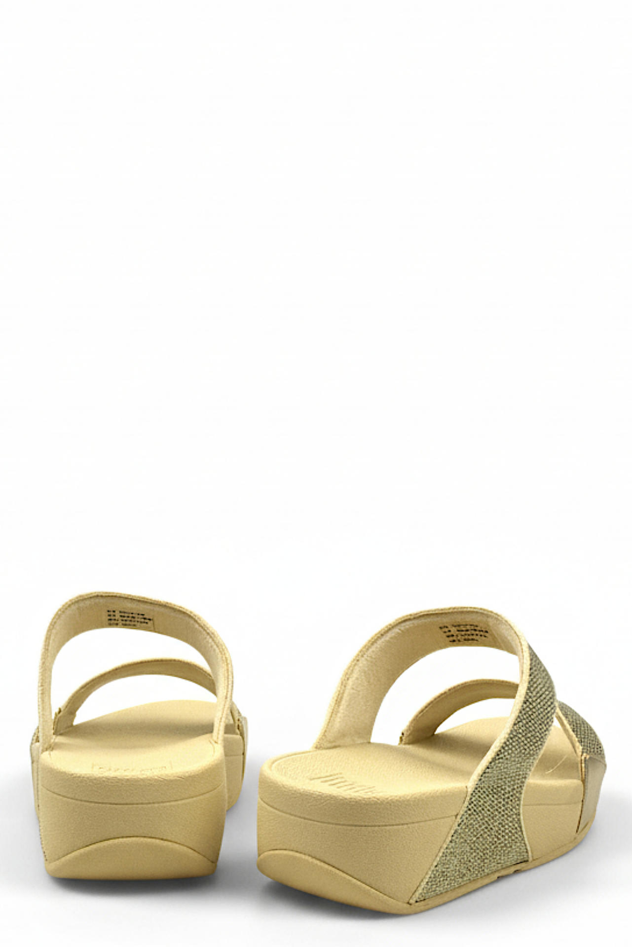 CIABATTA CON MORBIDE FASCE IN MICRO GLITTER. PLANTARE IN GOMMA BREVETTO FIT FLOP CON AMMORTIZZAMENTO E DISTRIBUZIONE DEL PESO CORPOREO SULLA SUOLA PER NON AFFATICARE GLI ARTI. TACCO 40, PLATFORM 20, FONDO GOMMA.