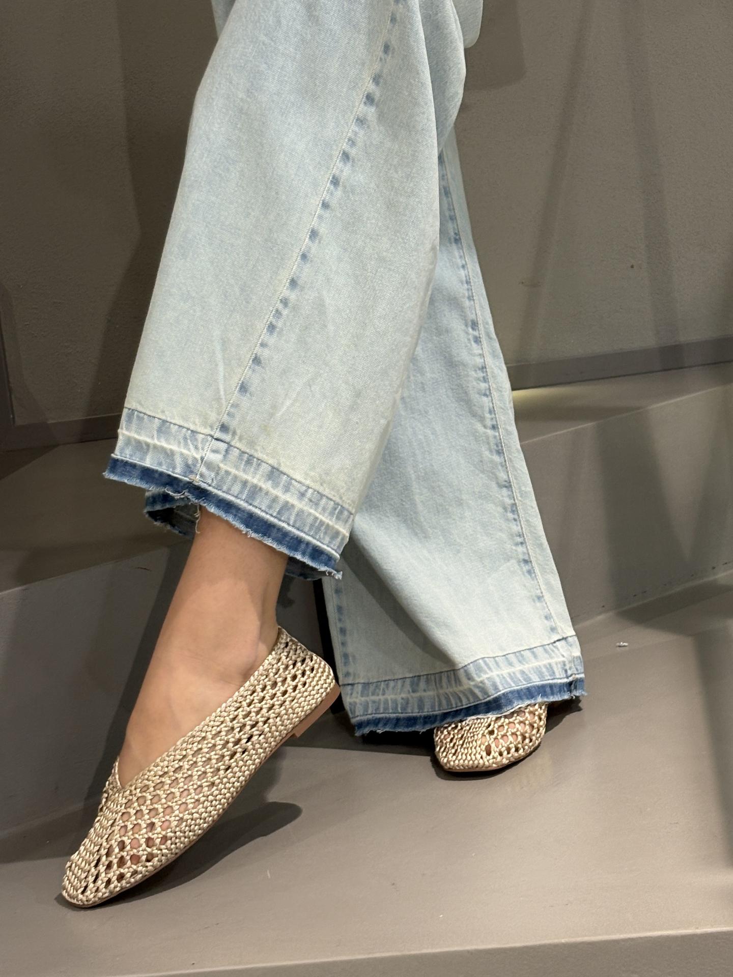 SCARPA IN MORBIDO TESSUTO LAVORATO INTRECCIATO E LAMINATO. TACCO 10, FONDO GOMMA.